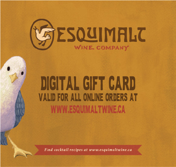Envoyez à quelqu'un que vous aimez, admirez ou souhaitez simplement impressionner une carte-cadeau numérique d'Esquimalt Wine Co. ! Les cartes cadeaux sont valables pour tout sur notre boutique en ligne !